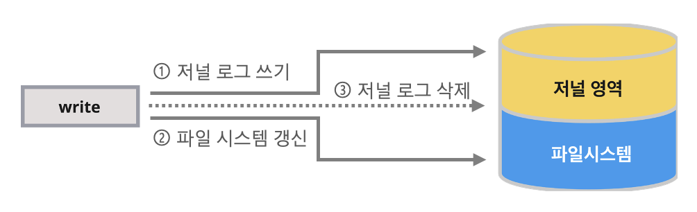 - 저널 로그를 성공적으로 처리한 후에는 저널 영역에서 로그를 삭제합니다. 이 과정이 끝나면 파일 시스템의 갱신 작업이 완료됩니다.
